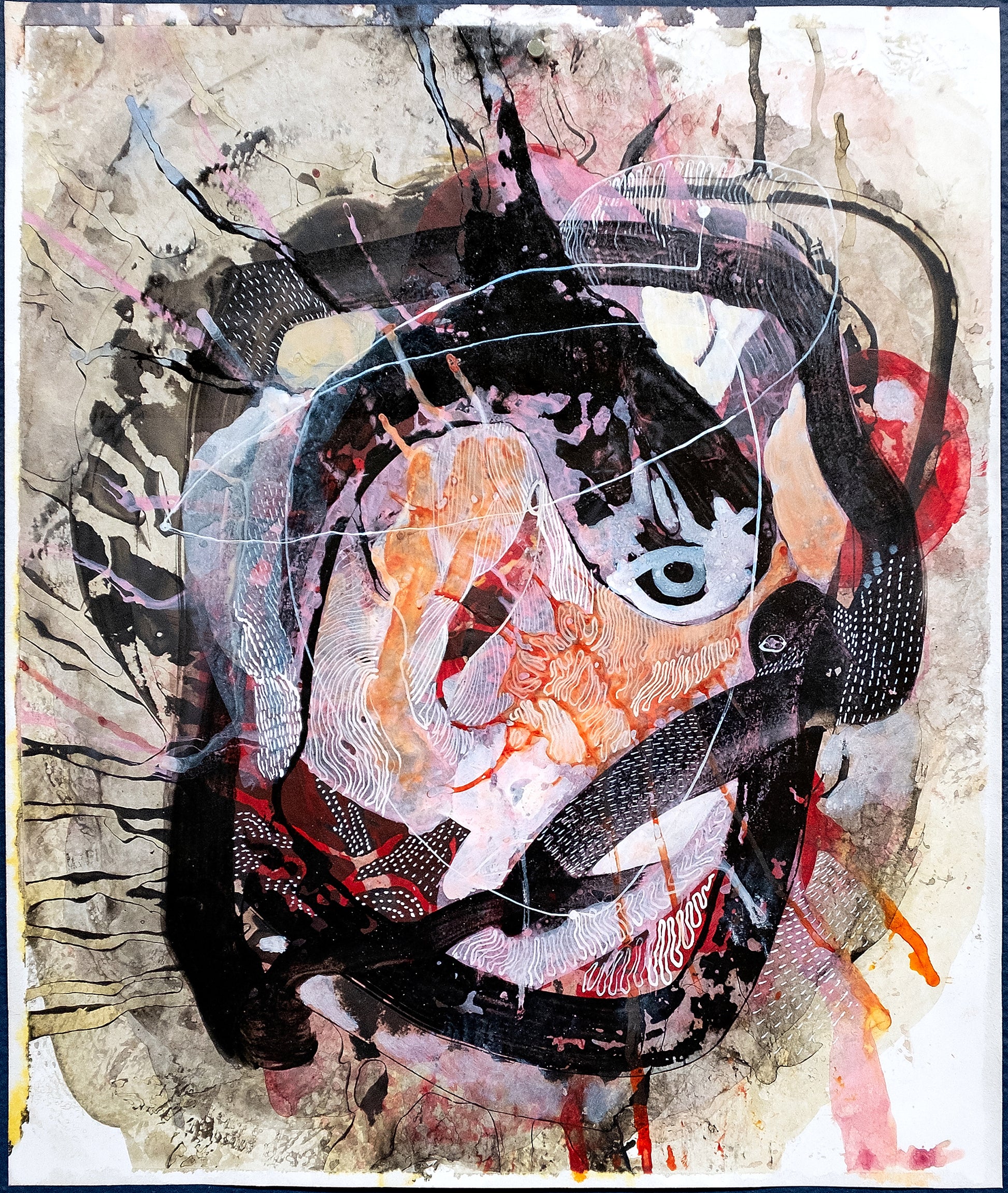 Pigment, acrylic, watercolor on paper, 15.3" x 12"