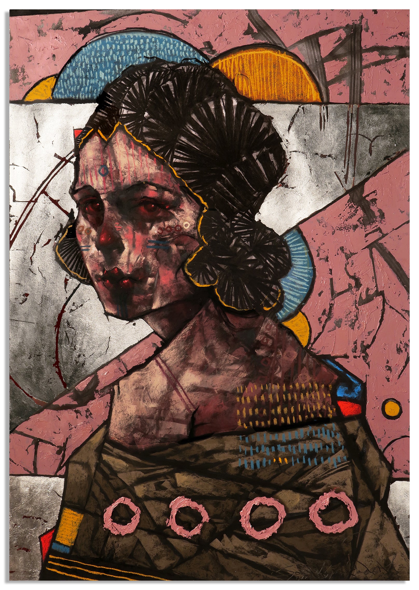 pastel, oil and silverleaf on Fabriano heavyweight paper