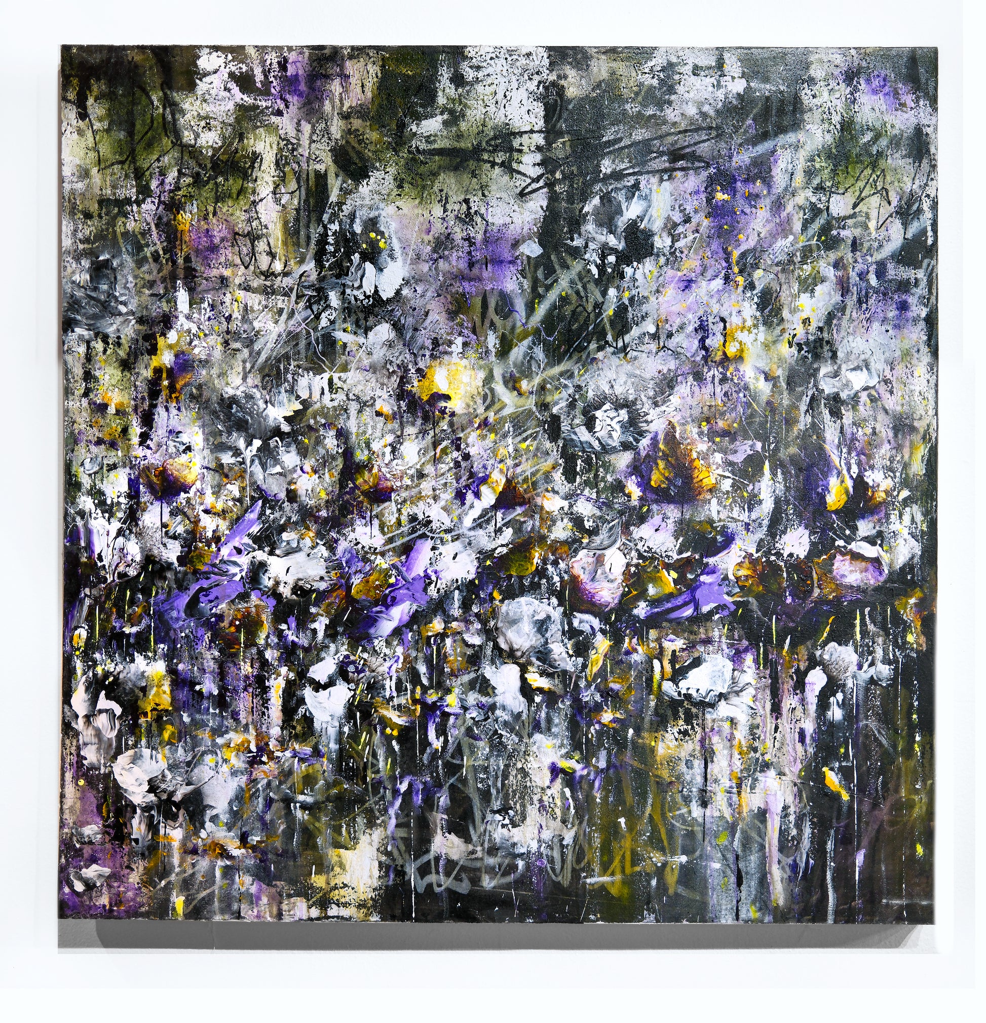 Acrylic, mixed media, oil tints and Liquidtex varnish on canvas, 43" x 43", 2024