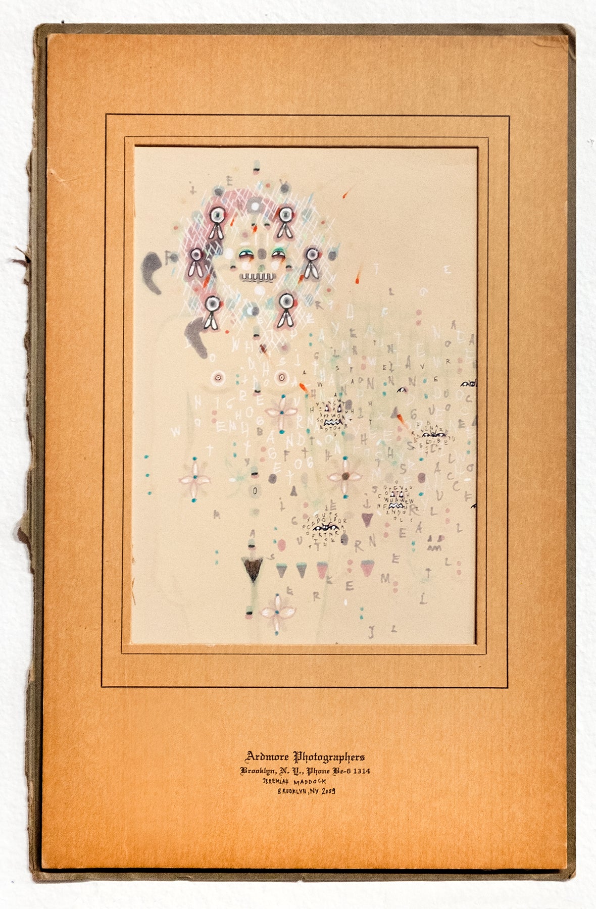 inks the artist mixes from dead pens and markers on found aged paper, 11 x 7 inches