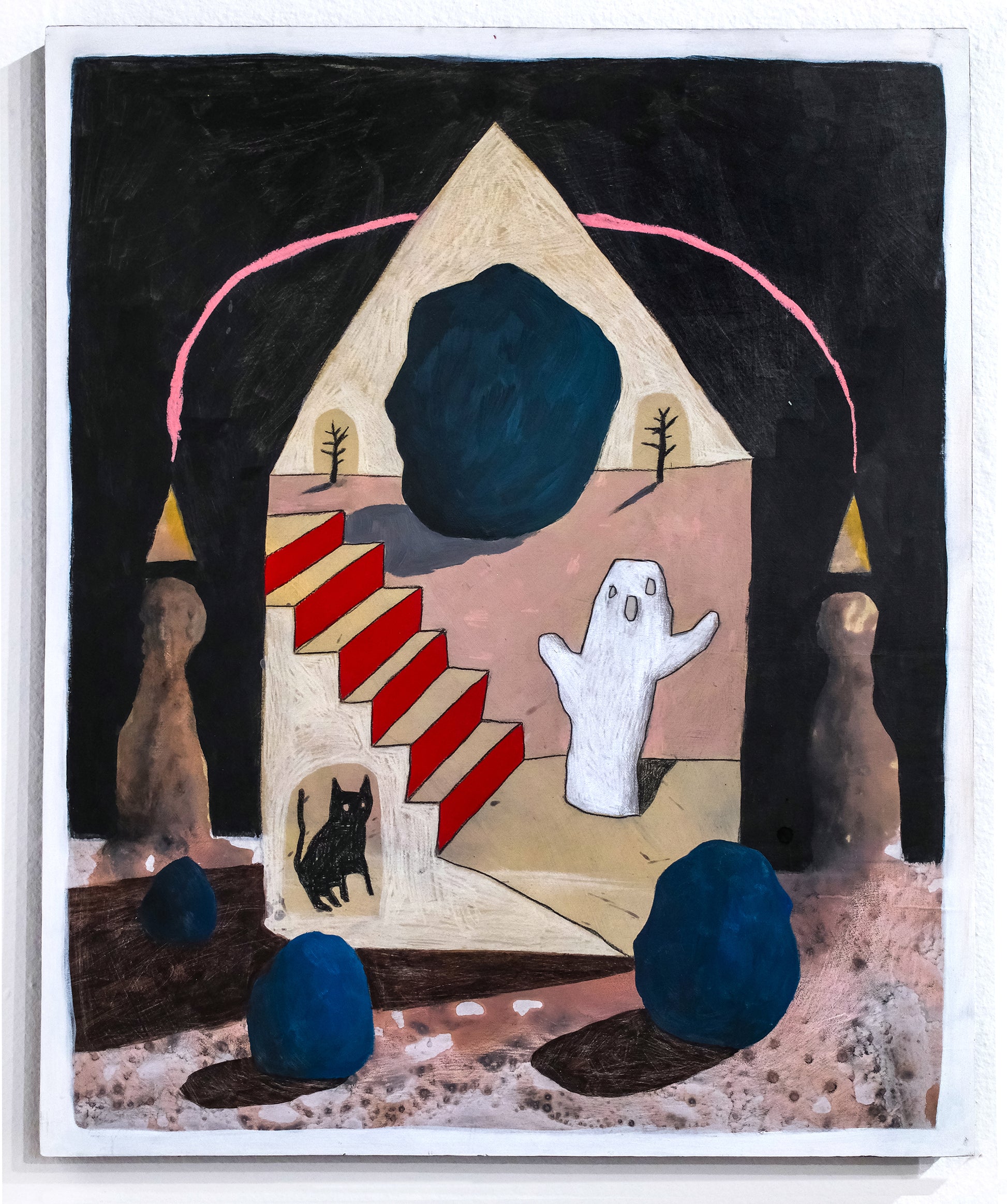 Acrylic, oil pastel, pencil. 24" X 20", wood panel.