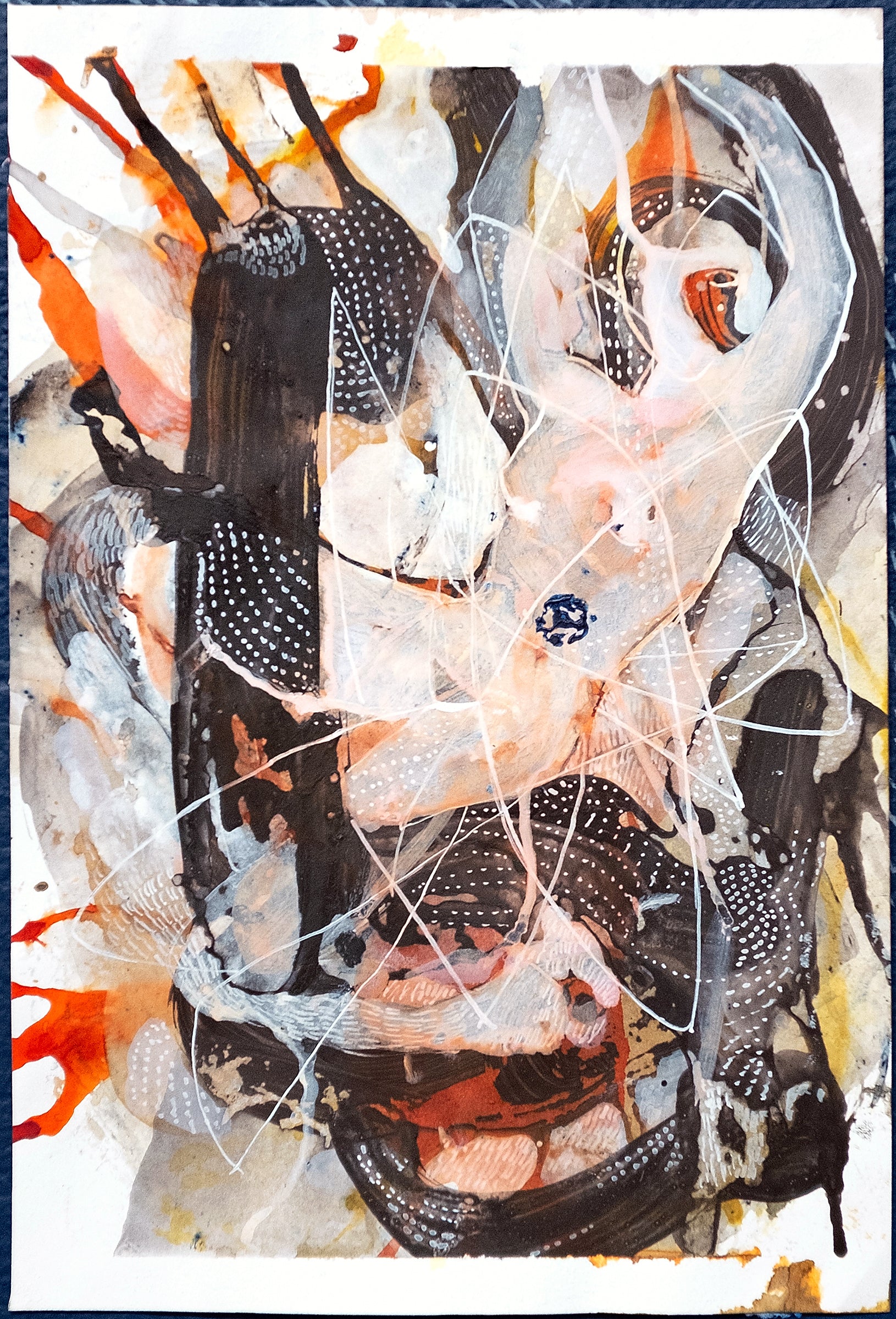 Pigment, acrylic, watercolor on paper, 11.8" x 7.9"